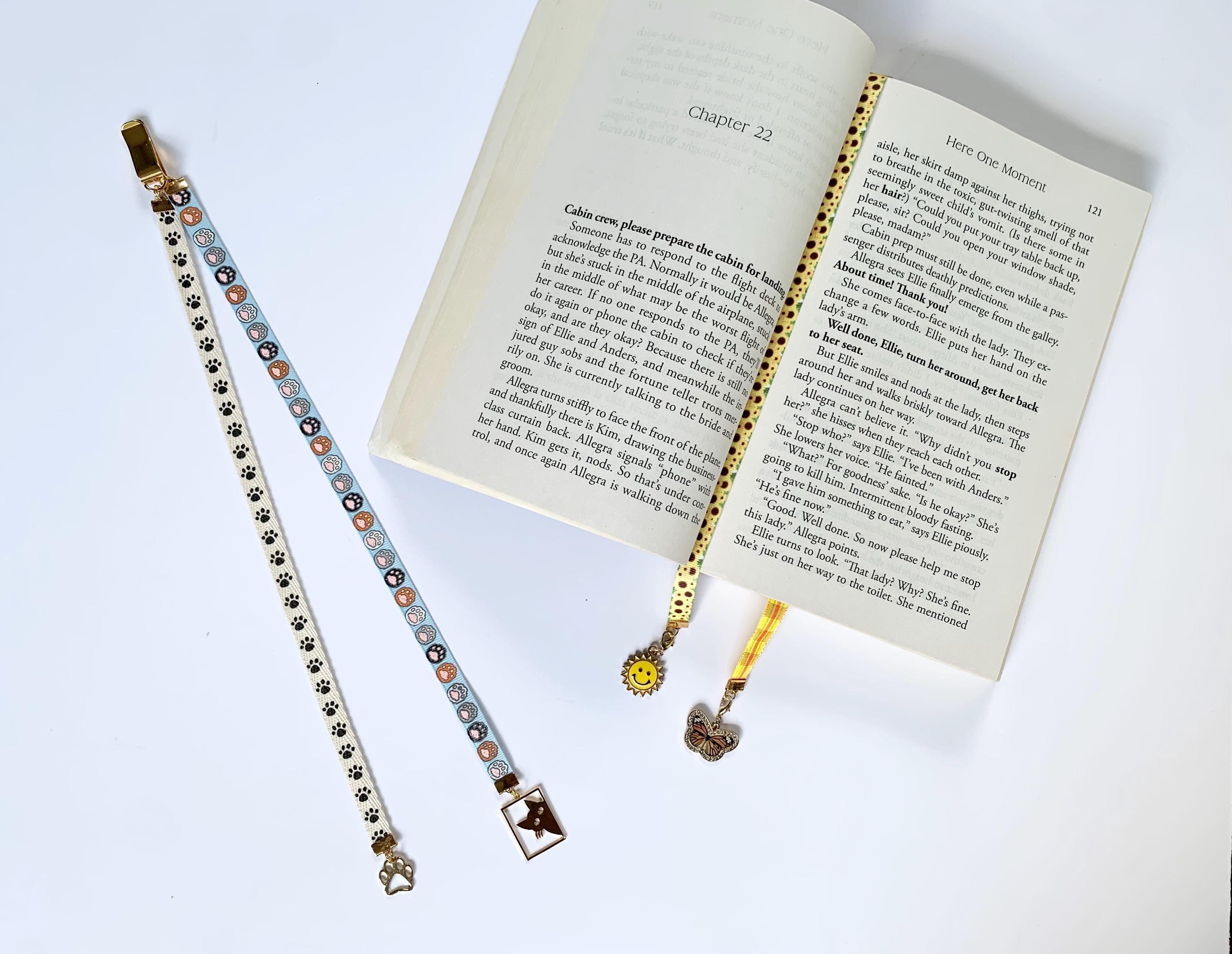 Need to mark more than one page at a time? Then a Charming Book Clip with two ribbons and charms is just what you need. Together we will create a bookmark with TWO ribbon colors and Two Enamel/Crystal/Gold accented charms from the current listings. Message me directly so we can create the perfect combination just for you based on materials available! Mix and match two different colors and two different charms or the same color and charm if you prefer. You decide and make it your very own.