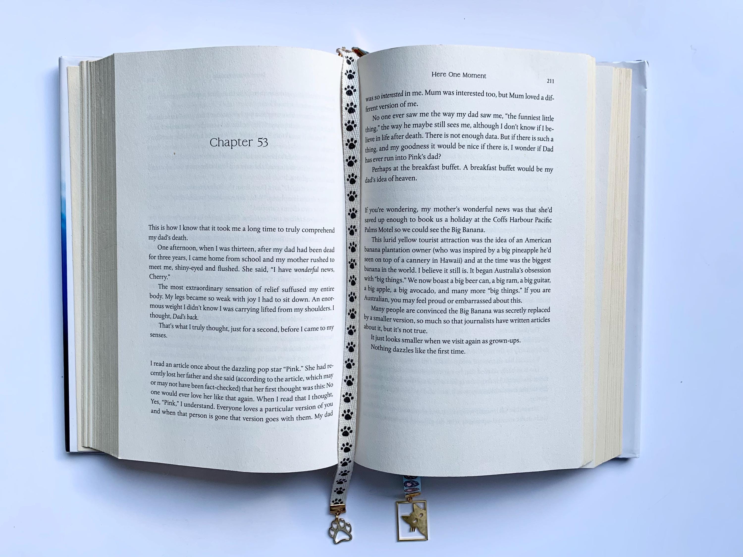 My patented design features a gold plated clip that attaches to your book so you never lose your bookmark. Just slide the clip onto the cover of a paperback or the binding of a hardcover when you start your book, then mark the page with the ribbon. Regular ribbon length is approximately 12” to accommodate various book sizes but I can make it any length you like.