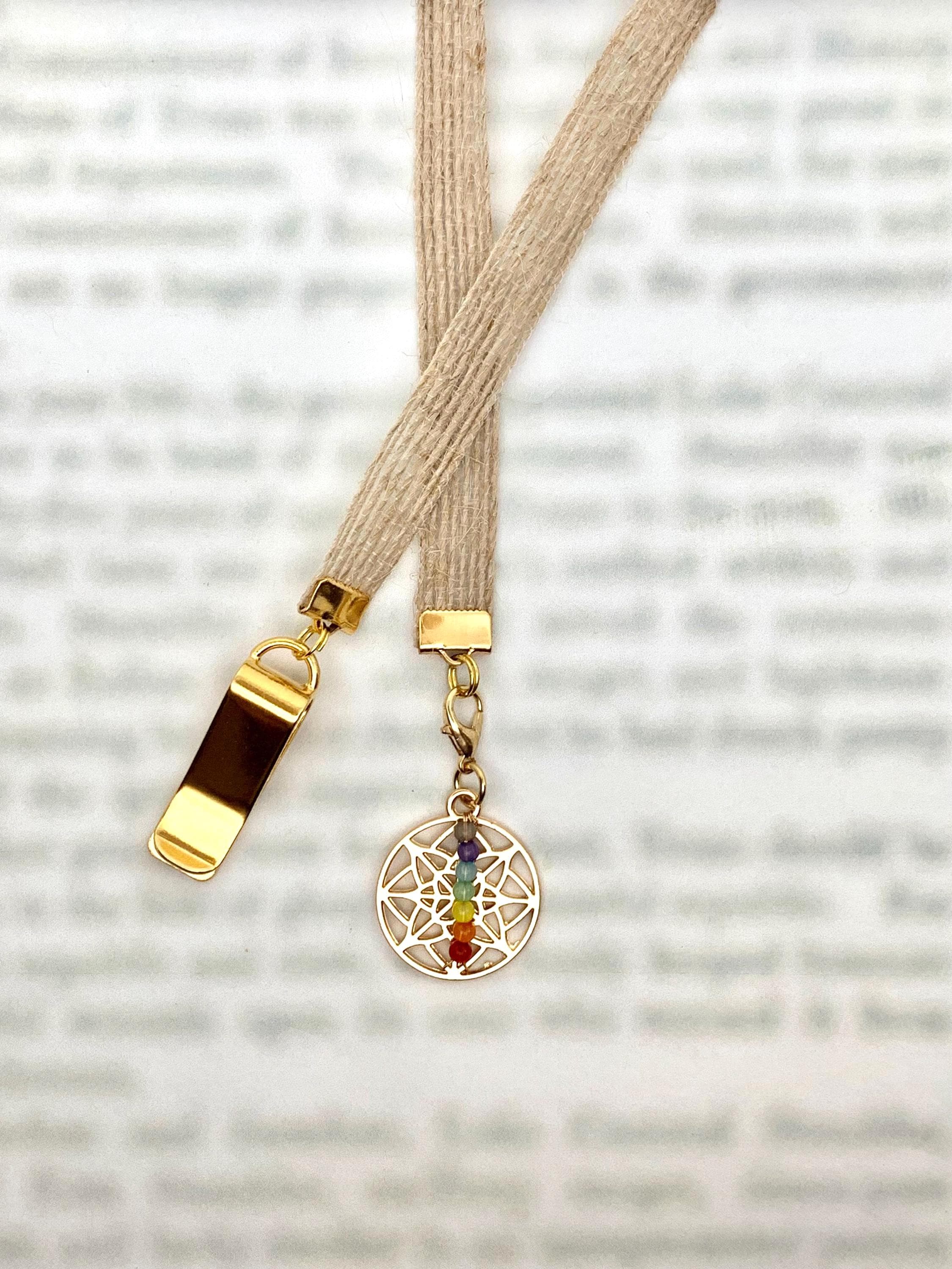 This Chakra bookmark will bring positive energy for your reading sessions with this gold-plated charm symbolizing the spiritual energy centers. Ribbon is natural jute, 3/8" wide and is approximately 12” in length to accommodate various book sizes.
