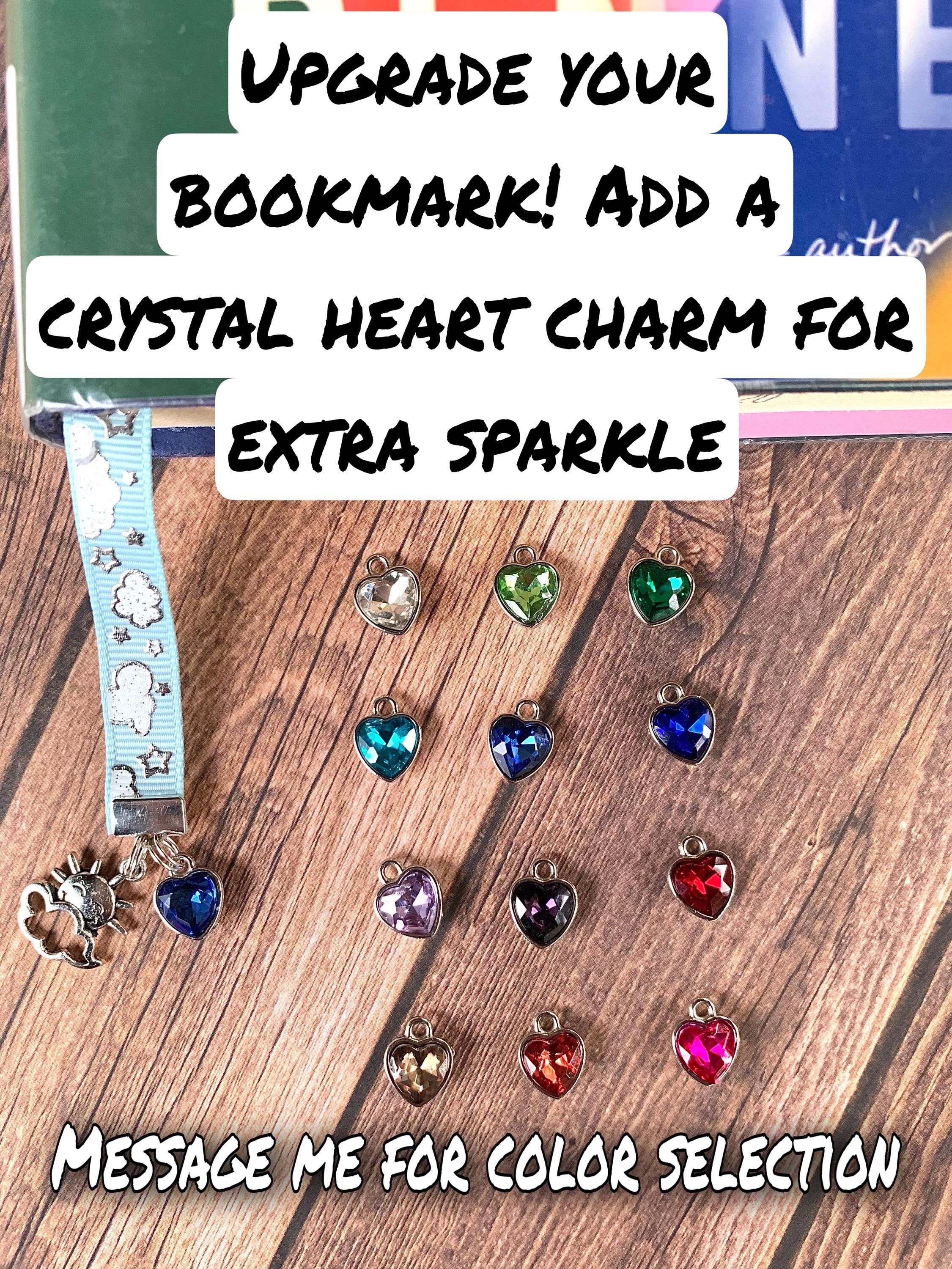 ACCESSORIZE: Add a Heart Shaped crystal charm accent to your bookmark. Make it extra special with a sparkling crystal in your birthstone or favorite color. Limited Colors available. Message me for availability and to make your color selection.
